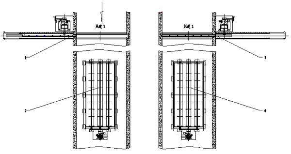 原理:當風道1通風,風門1打開,風門2關閉,此時測試風道2備用風機,將風門3關閉從而達到截流作用,打開風門4,即可測試風機。